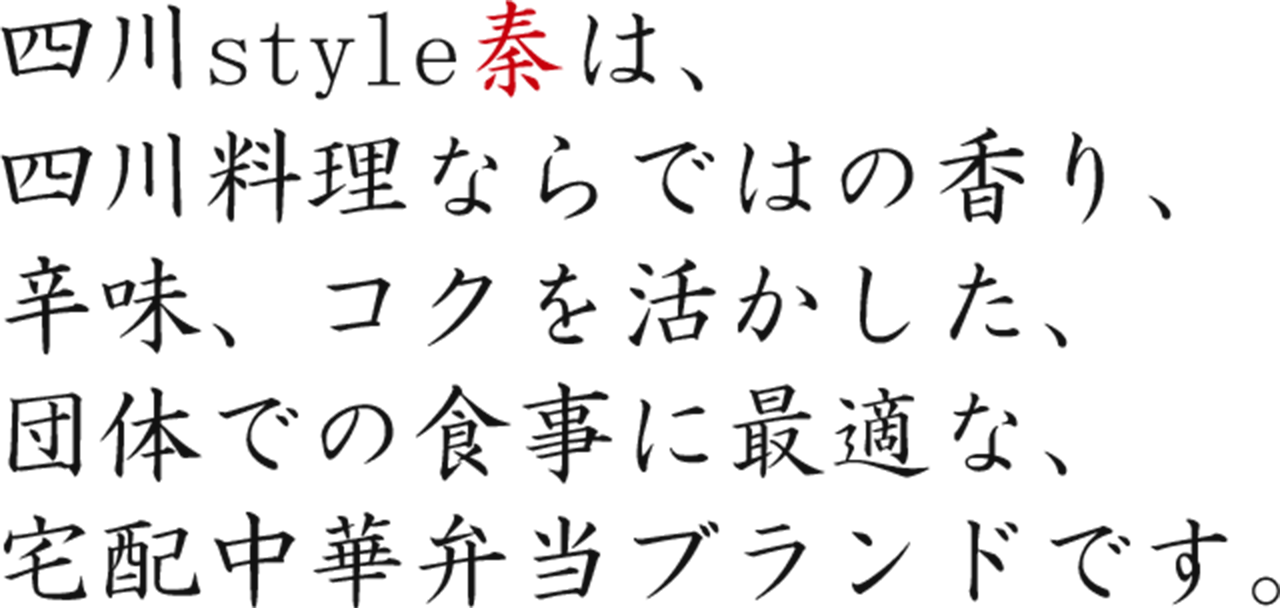 四川style秦のお弁当は、複数名で同時に召し上がる場を想定し、味・香り・食感のバランスを構成しています。